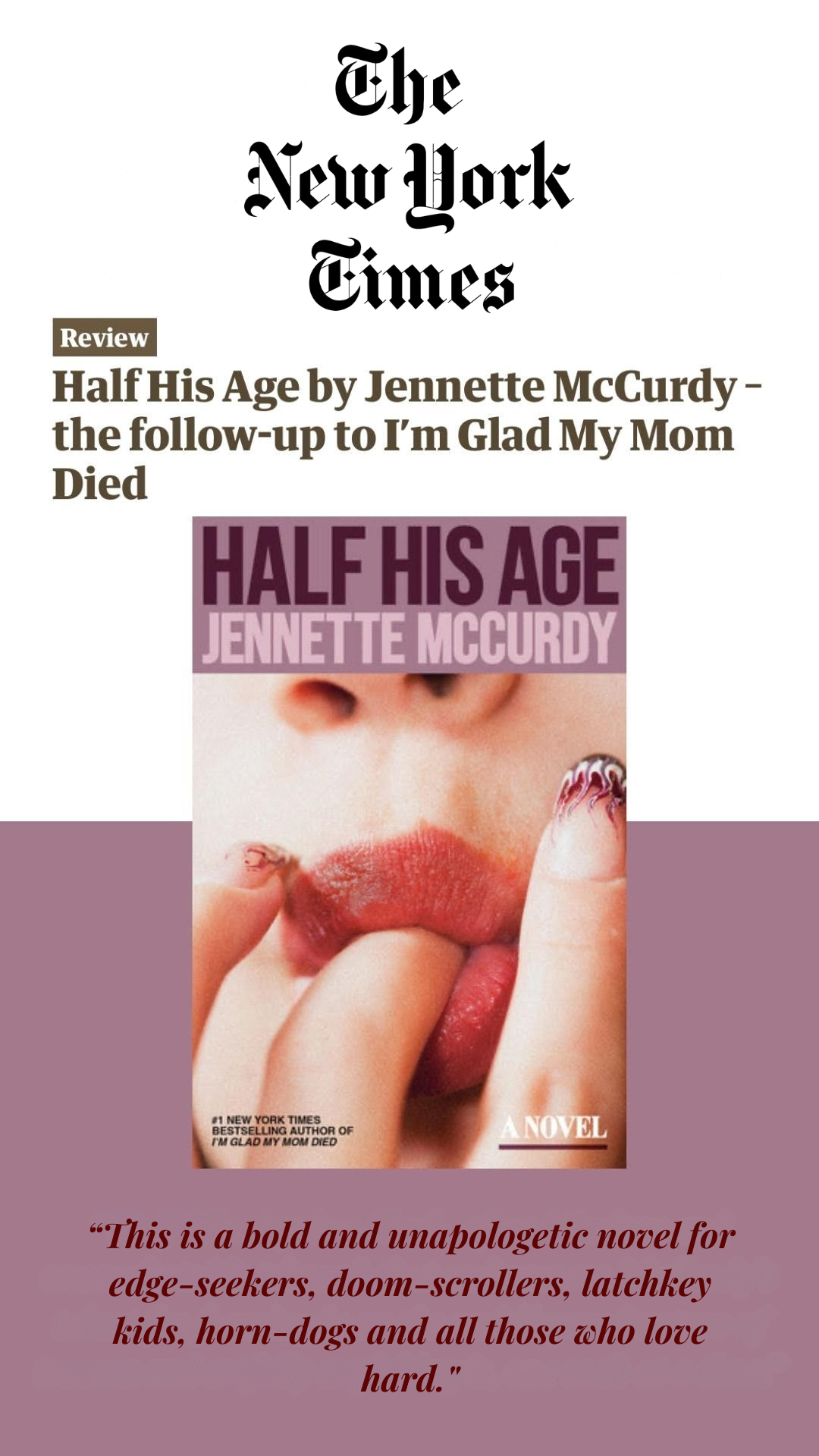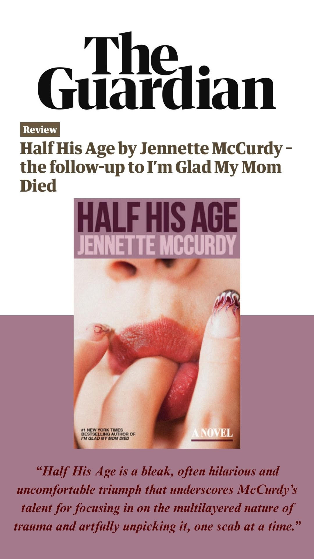 “Jennette McCurdy writes sentences that glimmer and cut like razors. With Half His Age, she delivers a deeply felt and humorous tale about the dangers of youth and desire—this novel is uncomfortable, unpredictable, and unputdownable.”